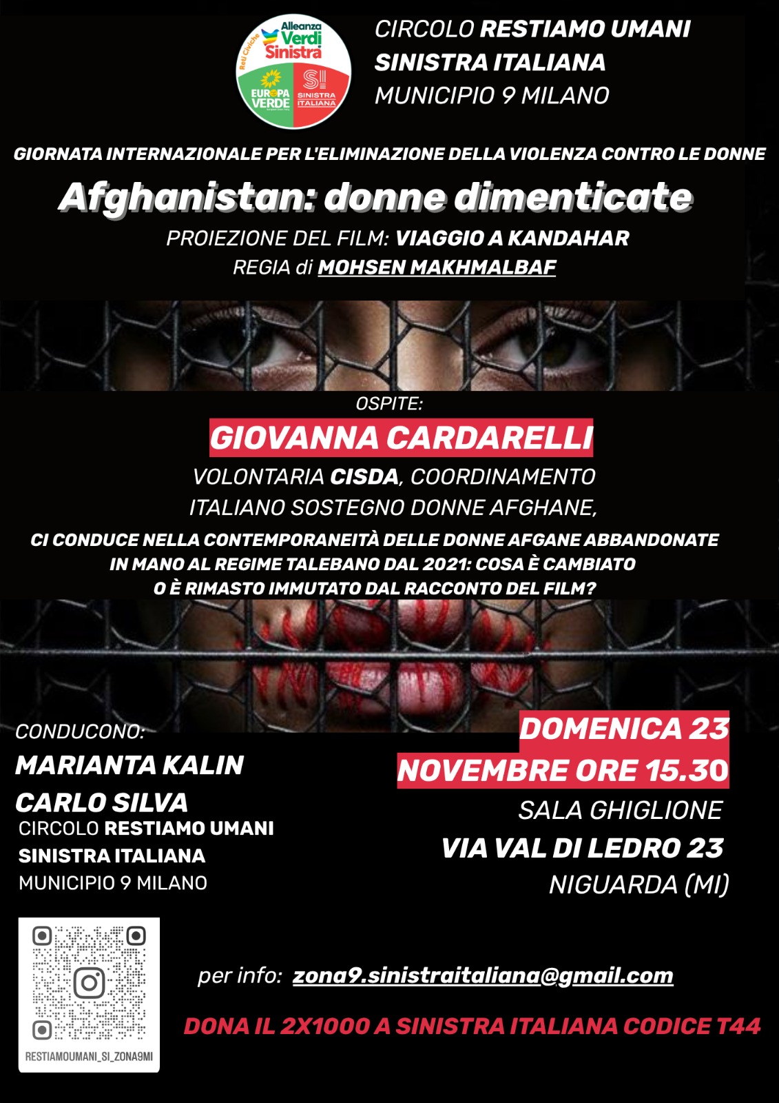 Proiezione del film “Viaggio a Kandahar” a seguire intervento di Giovanna Cardarelli di Cisda