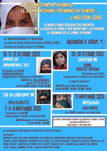 4 incontri per la raccolta fondi e per riportare l’attenzione al dramma delle donne afghane