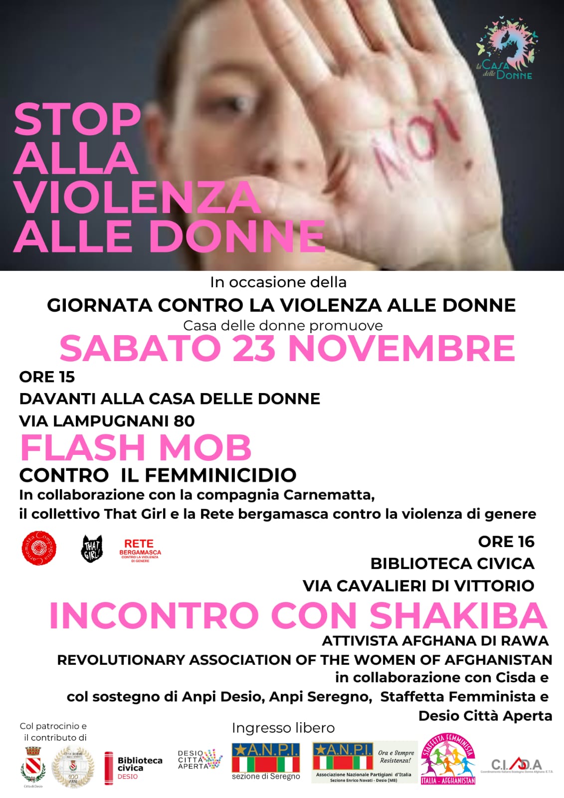 Stop alla violenza alle donne:16:00 16:00 23 Novembre 2024 Incontro con Shakiba attivista di Rawa Scarica la locandina – Desio 23 Novembre Desio Via Cavalieri di VittorioDesio, Visualizza luogoMappa Desio Dettagli Evento: {title} Vedi il calendario completo